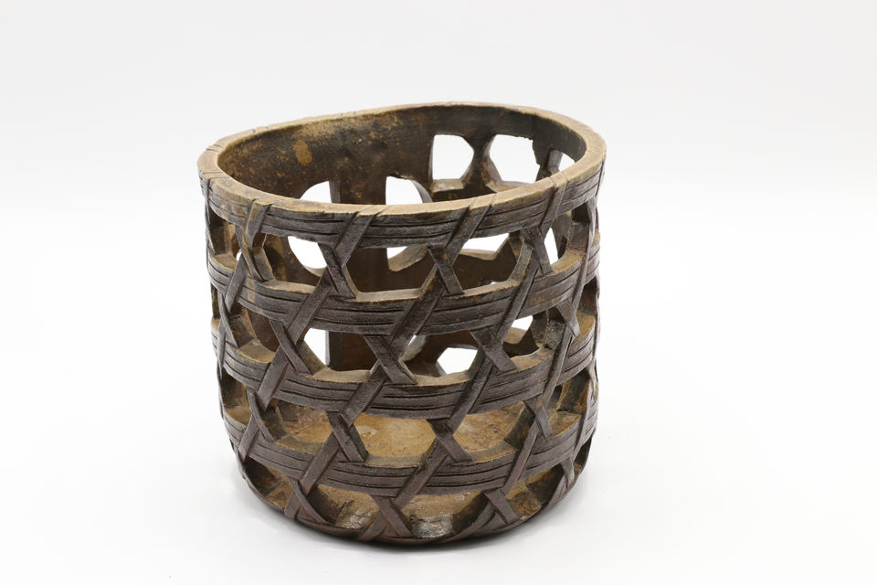 「古備前 透かし彫り 花籠」